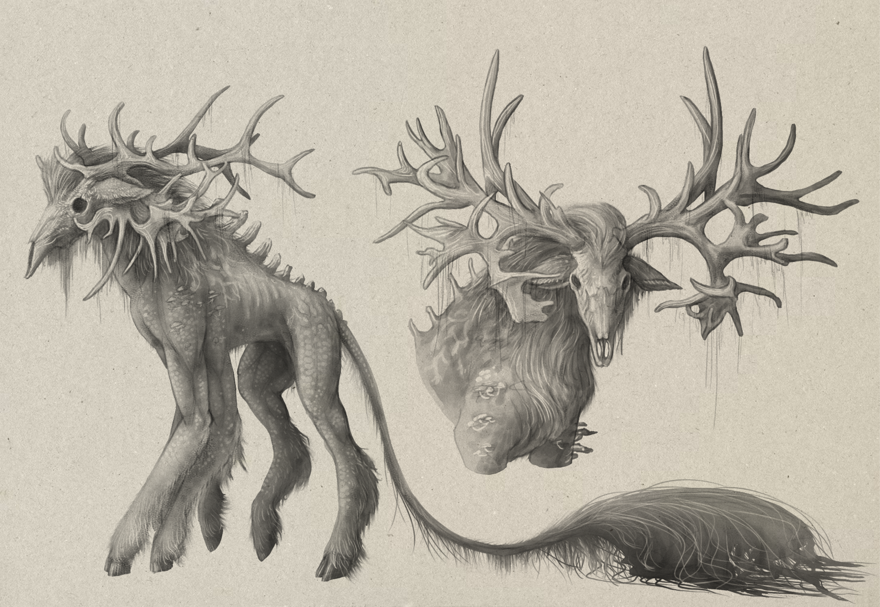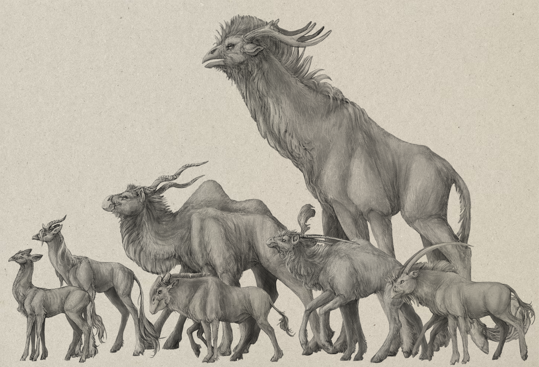 Here you will find a geologic history that stretches back millions of years, maps where dynamic tectonics meld with magical surrealism, and environments that, while inspired by real biological theory, sometimes feel entirely alien. You can dive into the astronomy and cosmology of the Alékian universe—planets, moons, and constellations—and stories woven in their honor by the peoples of this world. And creatures—oh boy, are there creatures. I’ve worked as a paleoartist and monster designer for various projects, but Alékia is where my personal brand of speculative evolution runs wild. Of course, there is also magic: realms colliding with other realms, tales of civilizations and heroes rising and falling in their own shadows, and gods beyond mortal comprehension.