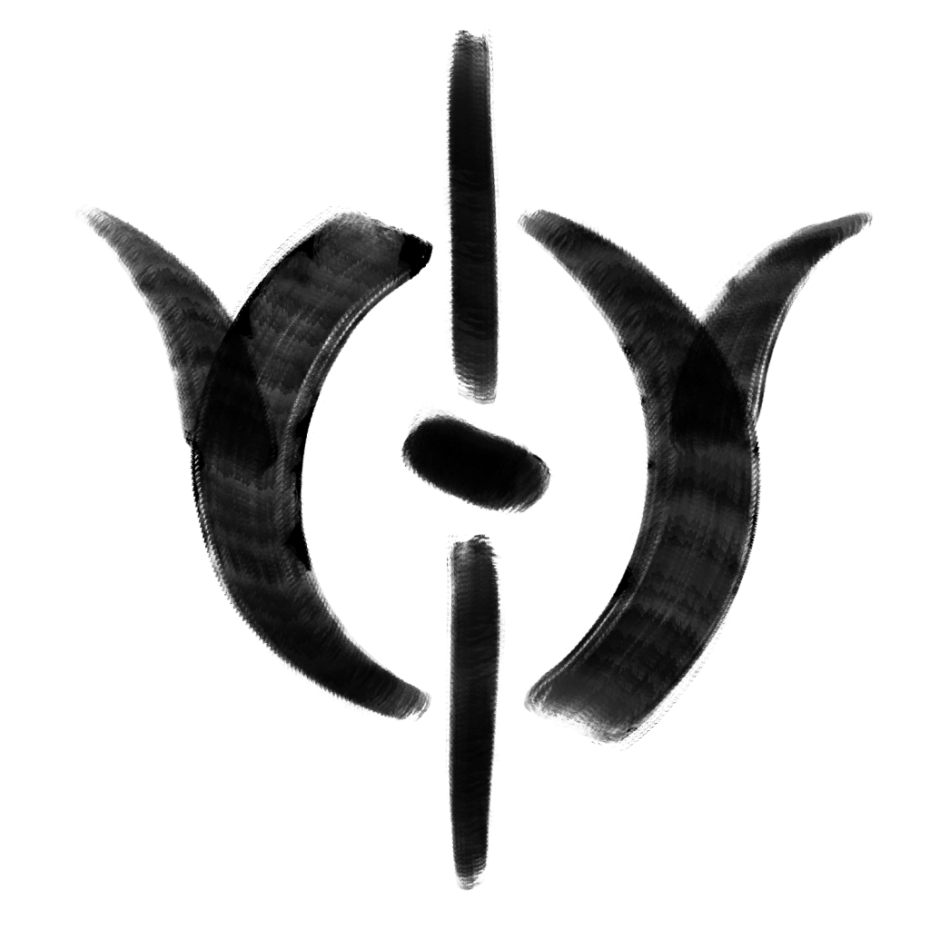Kiiri’s symbol is drawn from a circle split by a vertical line, its center marked by a single dot, with twin curves branching upward from either side. The vertical line is the veil itself, that firm yet quiet boundary between life and death. The dot marks the threshold every soul must cross- the time and place where breath ceases, and the Ferrier waits to guide one’s passing. Together, the bisected circle and sweeping arcs resemble the crown of the Antlered One, spread in symmetry. They embody the truth of equal return: that death is not an ending, but the counterpart and completion of life itself. In this way, the mirrored design of Kiiri’s sigil reveals her nature: not as a destroyer, but as a keeper of balance.